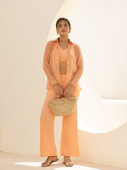 Brown Shibori Tie Dye 3 Piece Co-ord Set