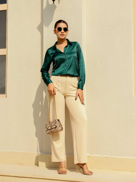 Emerald Green Satin Full Sleeves Cuffed Shirt