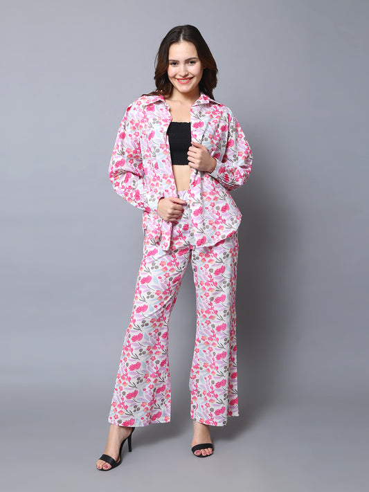 White Printed Wrap Around Full Sleeve Crop Top & Slit Skirt