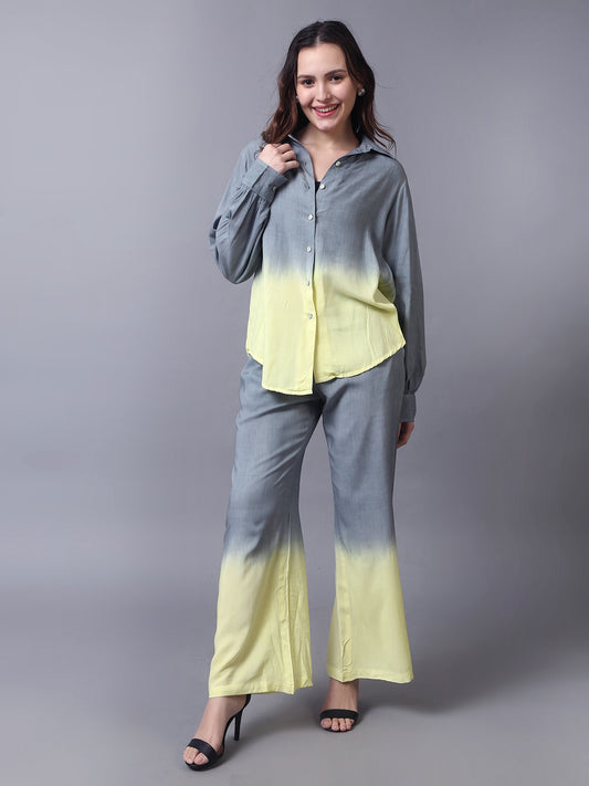 Grey and Yellow Tie dye 3 Piece Co-ord Set