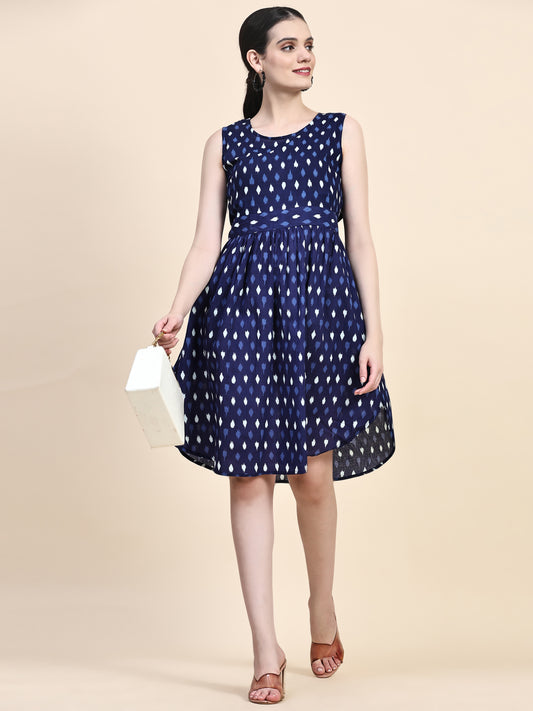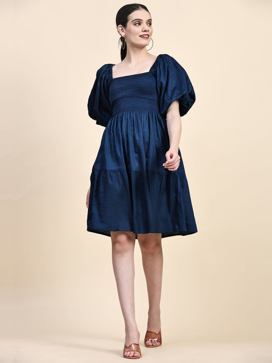 Blue Square Neck Spaghetti Strap Smocked Mini Dress